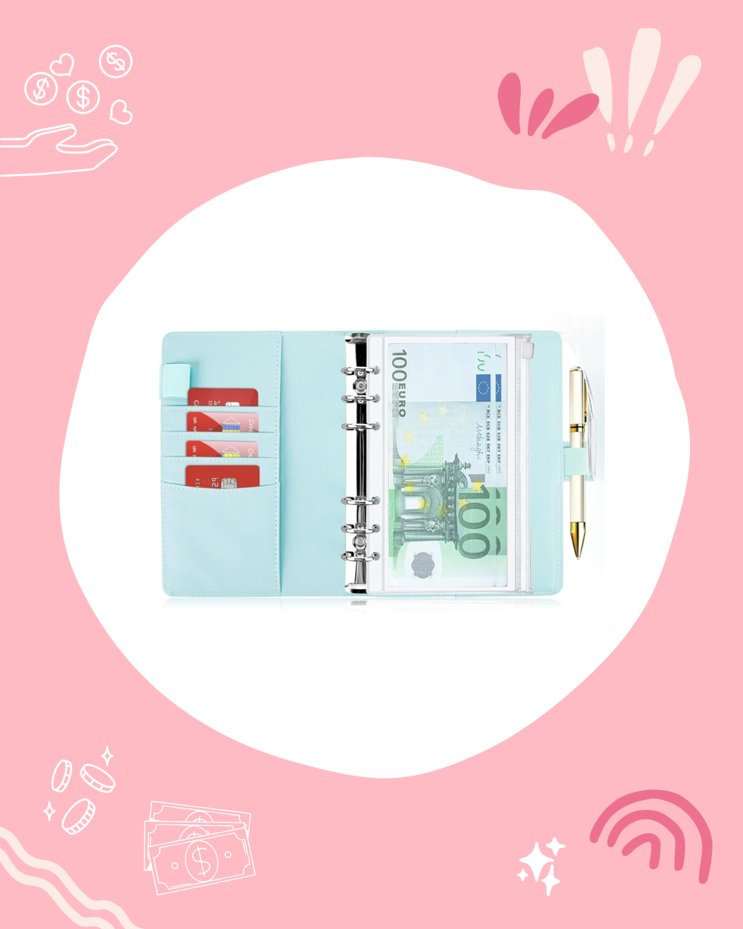 Budget planner au format A6 rigide brillant. L’intérieur est muni de pochettes pour ranger les cartes bleues ou les tickets de caisse. Ils s'utilisent avec des enveloppes de type A6 à compléter avec des trackers et des pages de garde disponibles sur le site. Plusieurs coloris sont disponibles sur le site.