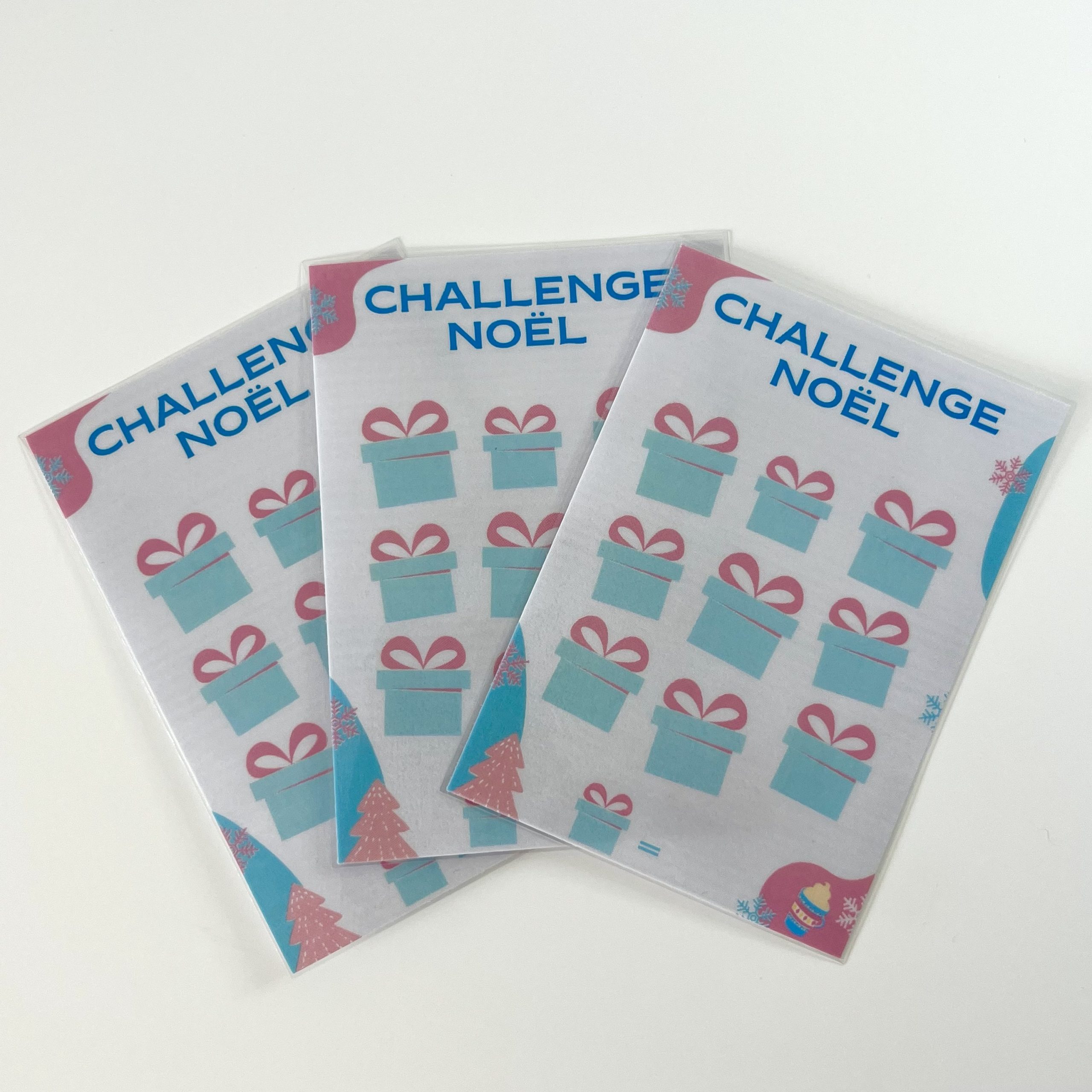 Trackers plastifié imperméable réutilisable à l’infini, à glisser dans vos enveloppes zip, ce tracker va vous permettre d’épargner pour Noël le principe est simple on indique le montant de chaque cadeau en bas du traqueur à côté du motif égal et à chaque fois que ce montant est mis dans l’enveloppe on coche un petit cadeau à vous de vos fixer votre objectif 500€ 700€ ou 1000€ en fonction de vos envies  !