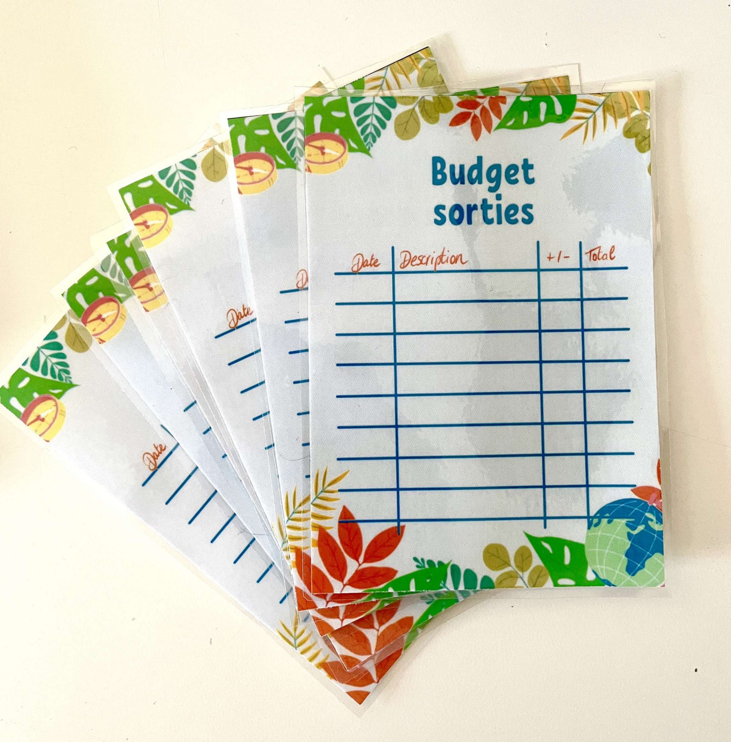 Trackers plastifié imperméable réutilisable à l’infini, à glisser dans vos enveloppes zip, ils vous permettront de tracker vos dépenses  !
