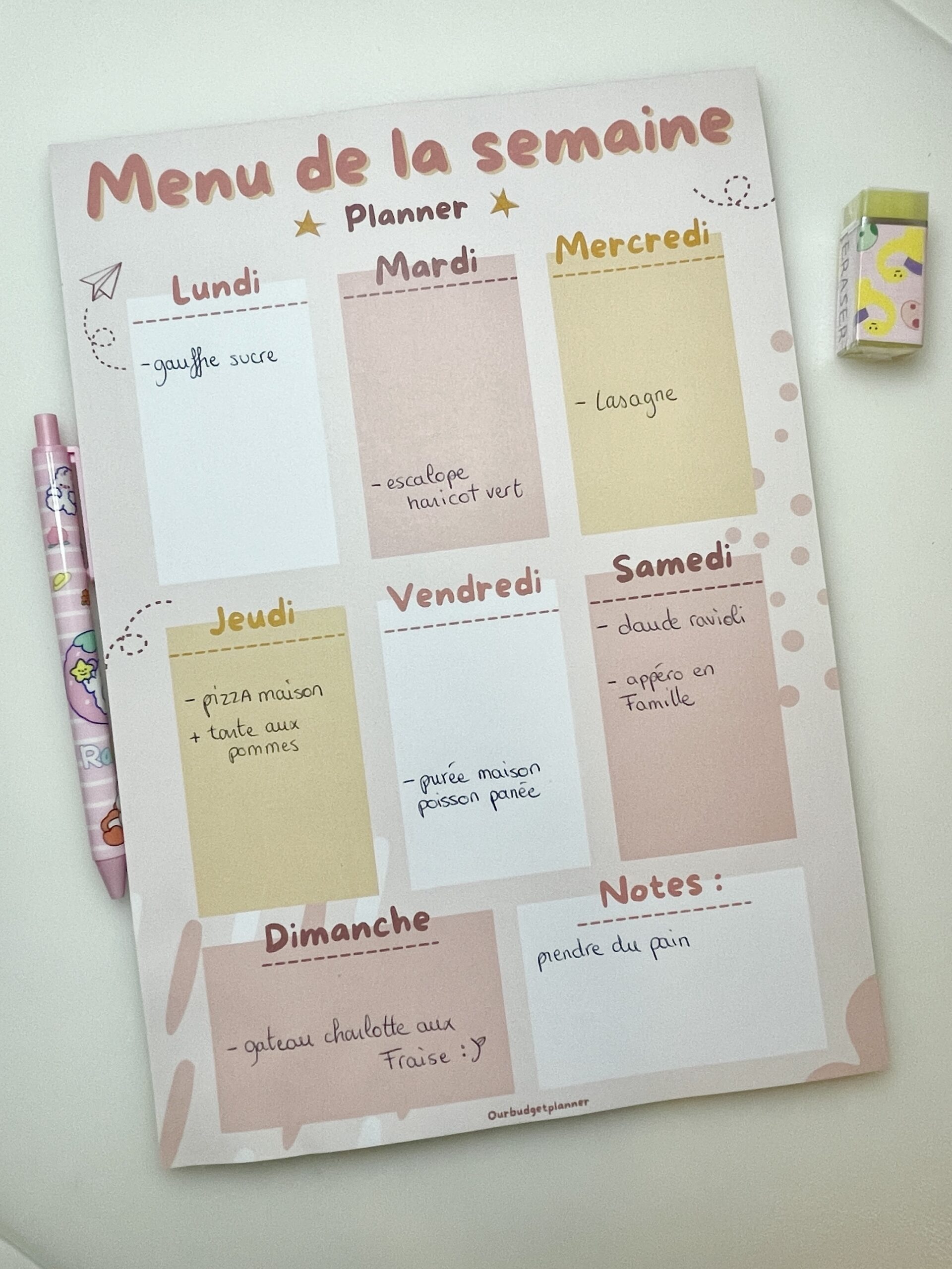 Planner Menu de la semaine