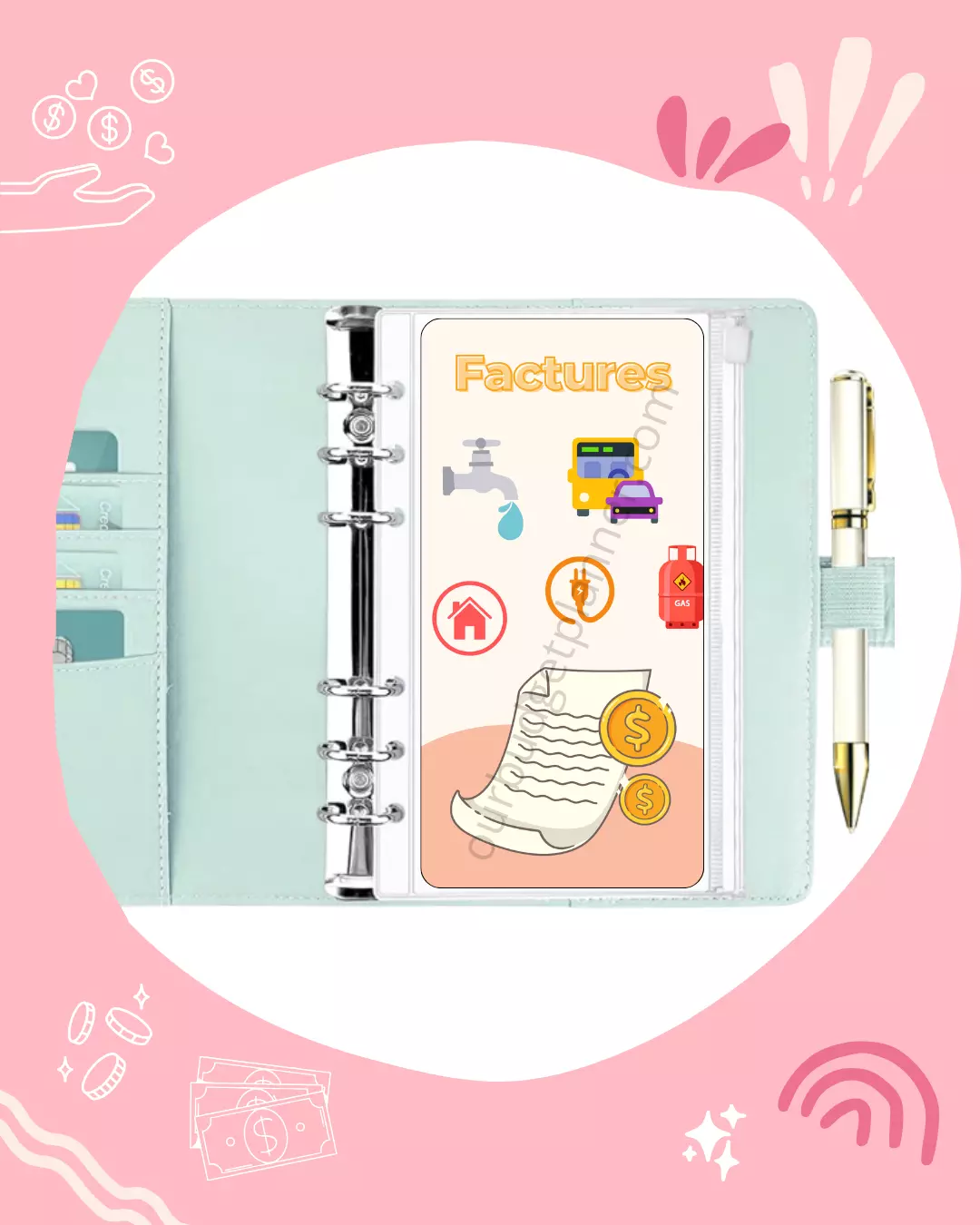 Les pages de garde se place dans l’enveloppe zip pour embellir votre budget planner, plastifié vous pouvez également écrire dessus avec un marker permanent ou un feutre d’ardoise. Mesure environ 17x8cm en format A6, mesure environ 20x12cm en format A5 et mesure environ 12x7cm en format A7.