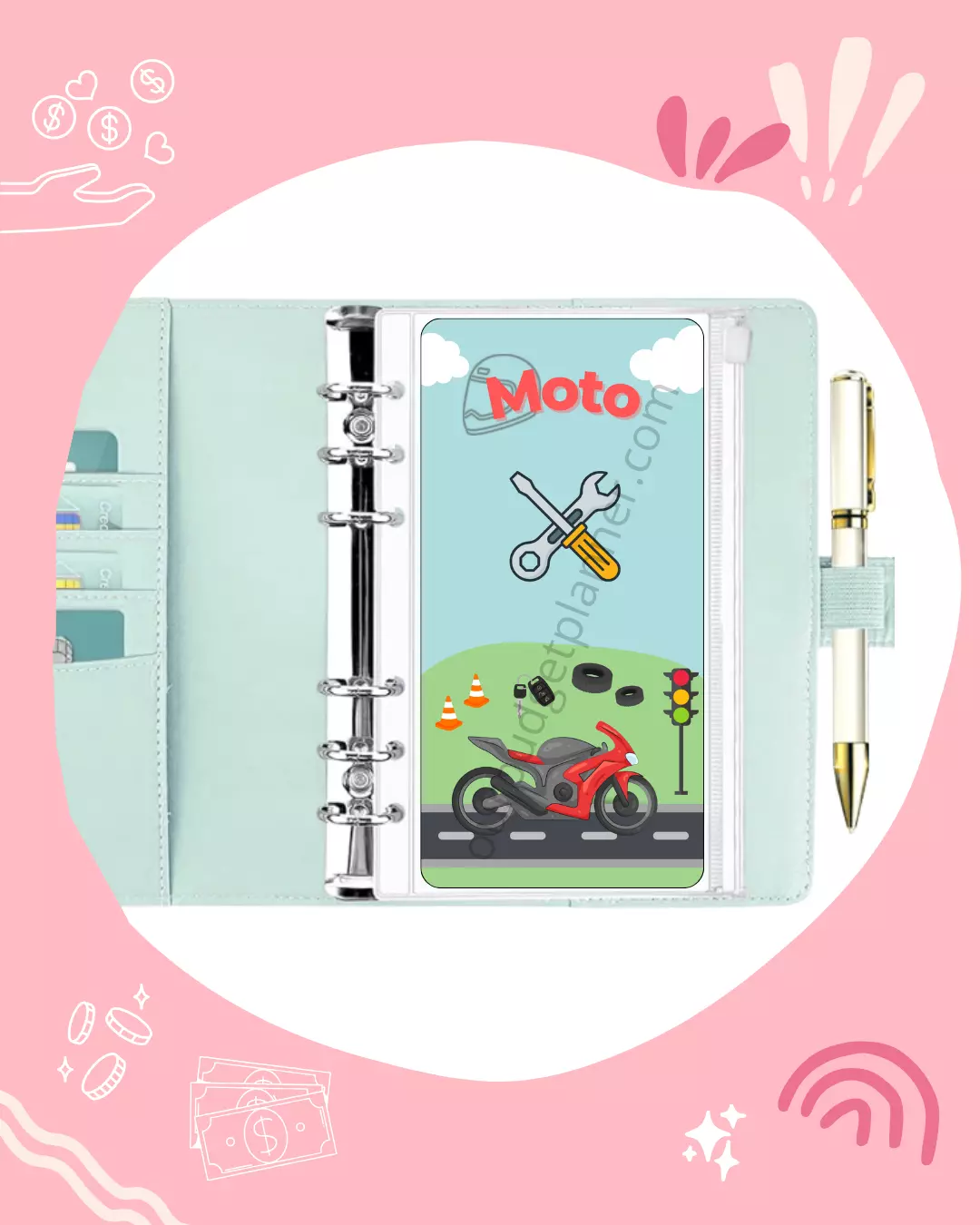 Les pages de garde se place dans l’enveloppe zip pour embellir votre budget planner, plastifié vous pouvez également écrire dessus avec un marker permanent ou un feutre d’ardoise. Mesure environ 17x8cm en format A6, mesure environ 20x12cm en format A5 et mesure environ 12x7cm en format A7.