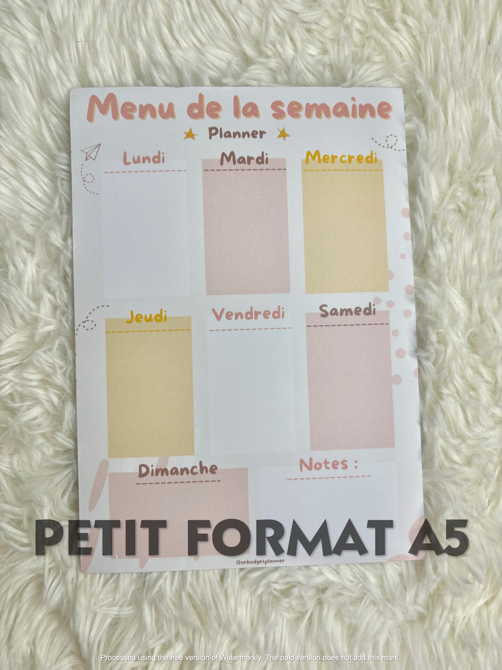 Planner Menu de la semaine A5