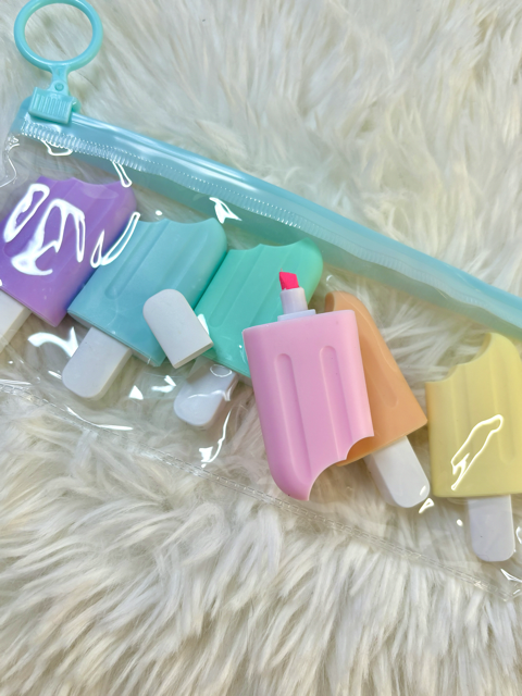 Trousse comprenant 6 petits surligneurs en forme de glace ????